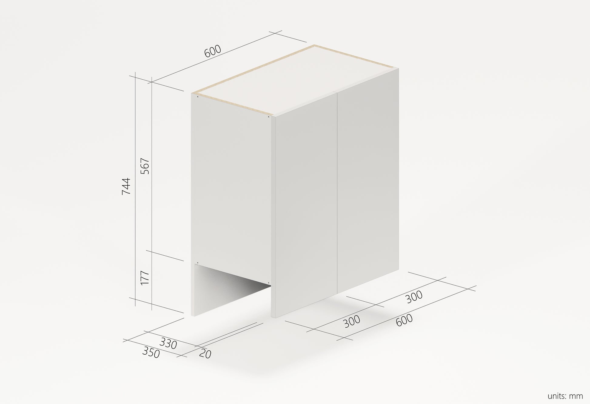 - Carcass & Backboard : Particleboard, Melamine foil, Plastic edging, Polypropylene plastic, ABS plastic, White HMR 16mm.