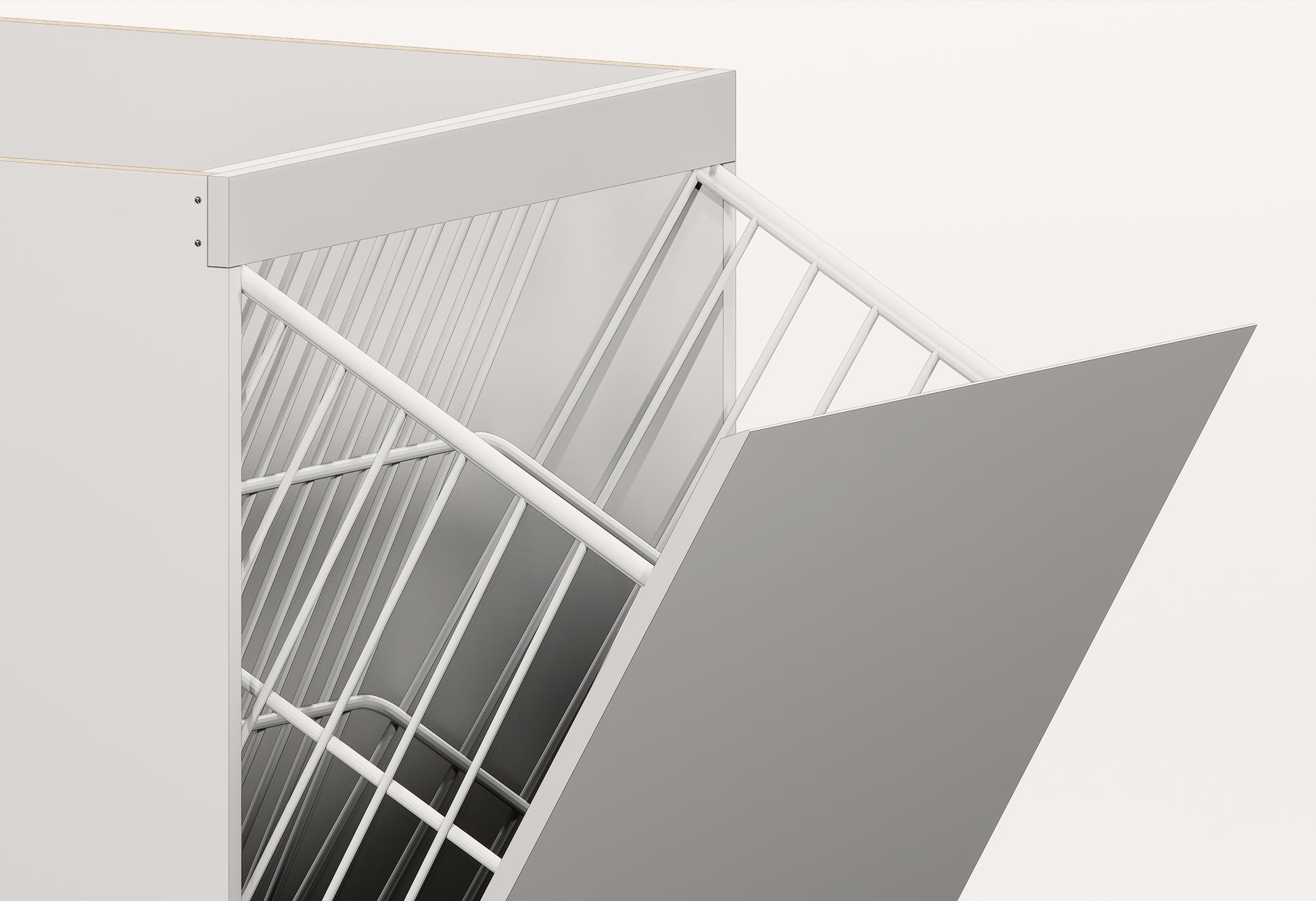 - A simple stylish free standing storage cabinet with laundry hamper.