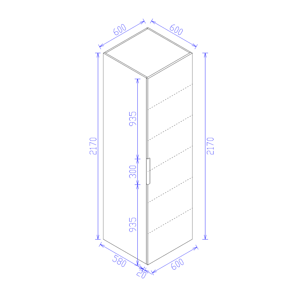 - Dimensions after assembling: 600*600*2170mm (please note: height does not include the feet)